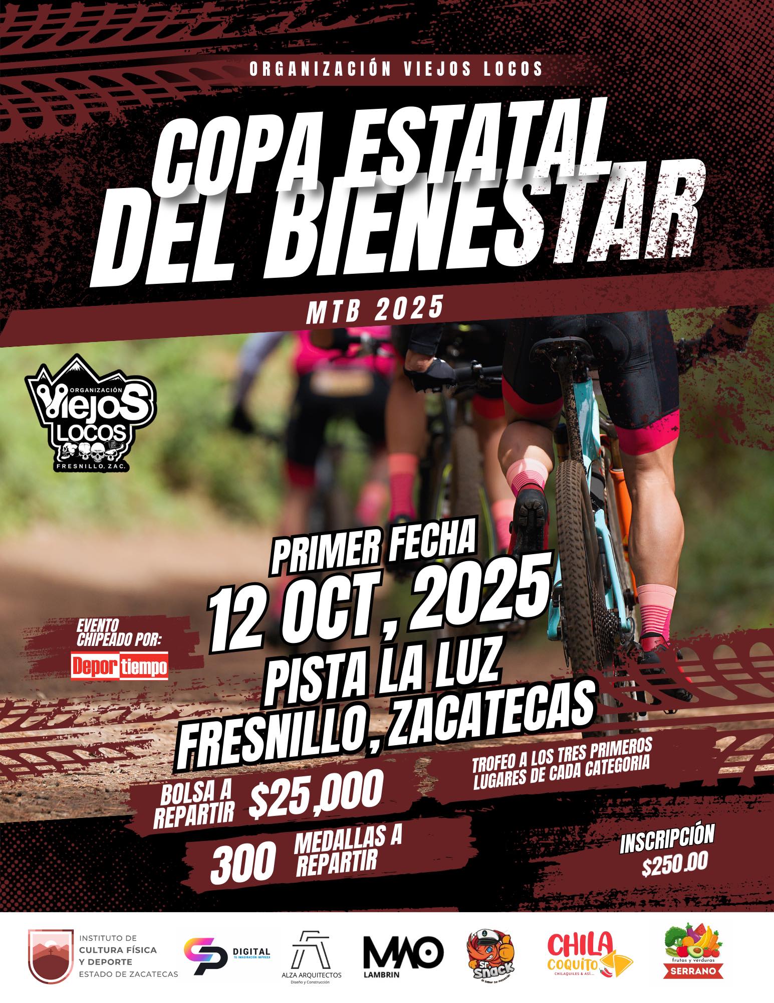 Copa Estatal del Bienestar – MTB 2025 Copa Estatal del Bienestar – MTB 2025 El evento está terminado. Fecha Oct 12 2025 Expired! Hora 8:00 am - 2:00 pm Más Información Resultados Localización Guadalupe Guadalupe, Zac Categoría MTB Organizador Organización Viejos Locos Web https://www.facebook.com/organizacionviejoslocos Resultados Compartir este evento